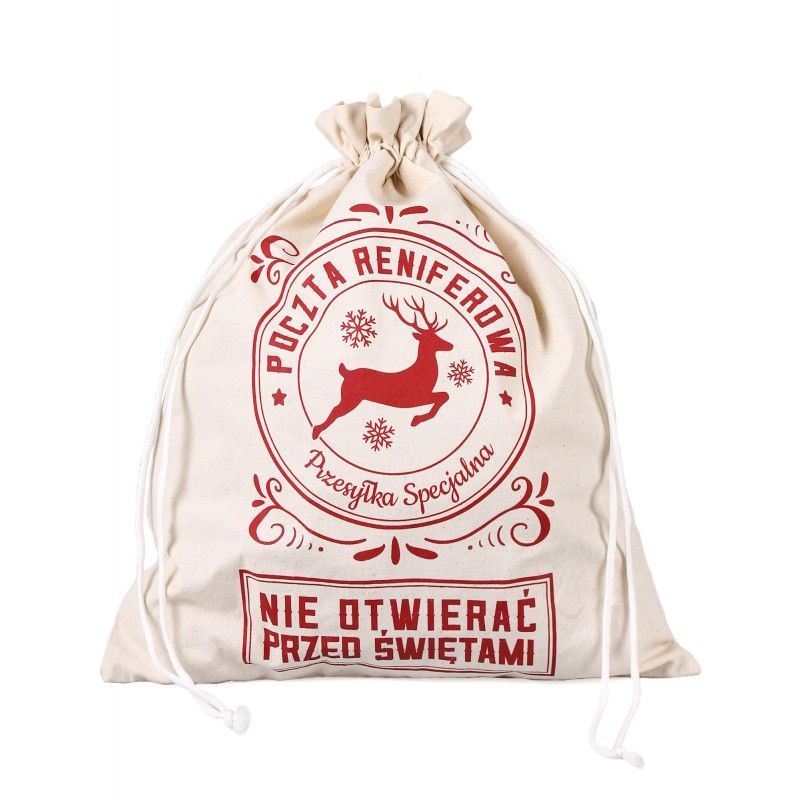 Świąteczny worek z nadrukowanym reniferem. Worek jest dość duży (zapakujesz do niego spory prezent), a jego kolorystyka uniwersalna – możesz włożyć do niego upominek tak naprawdę dla każdego – niezależnie od wieku i płci. I pamiętaj, nie zapomnij uprzedzić obdarowanej osoby, żeby pod żadnym pozorem nie zaglądała do worka i nie otwierała go przed Świętami!