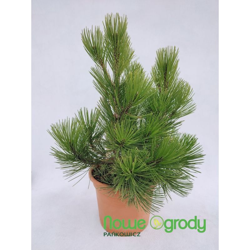 Gałęzie są gęsto pokryte długimi nastroszonymi igłami zebranymi w pary. Igły są soczyście ciemnozielone, błyszczące, sztywne, kłujące