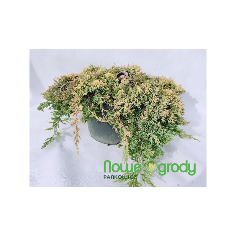 Niski krzew iglasty o płożącym pokroju i umiarkowanym tempie wzrostu tworzący gęste, złociste kobierce.
