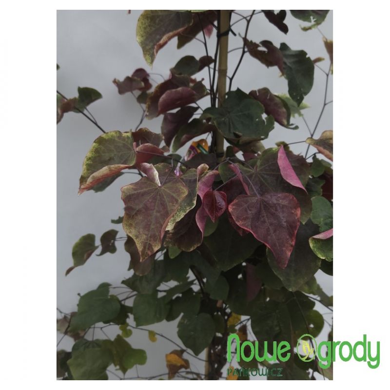 Drzewo o rozłożystym, luźnym pokroju, dorastające do 4m wysokości. Liście duże, sercowate, na początku w odcieniach bieli, różu, fioletu i zieleni. Późnym latem wybarwiają się na zielono. Kwiaty różowe, zebrane po kilka w pęczkach, tworzą się bezpośrednio na pniach i gałęziach. Wymaga ciepłego, osłoniętego stanowiska oraz przeciętnie zasobnej, umiarkowanie wilgotnej gleby.