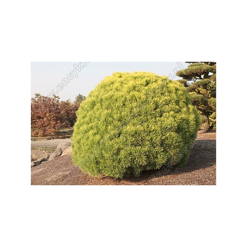 karłowy. Po 10 latach dorasta do 0,75 m wys. i podobnej szer. Igły podwójne,