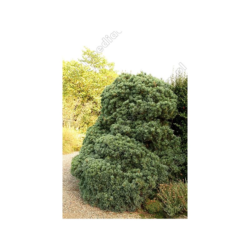 Jest sosną pięcioigielną. Igły sztywne, charakterystycznie poskręcane,