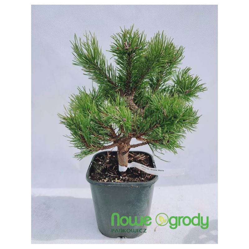 Przyrosty mocno rozgałęzione, tylko 2 cm rocznie. Dziesięcioletnie egzemplarze osiągają 0,4 m śr. i 0,2 m wys. Igły podwójne, krótkie, ciemnozielone, około 4 cm dł., gęsto ułożone.