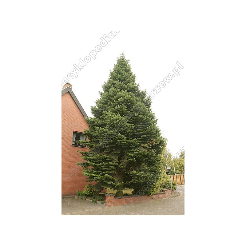 wysokość do 35 m. Korona, gęsta, regularna, o pokroju stożkowatym, długo