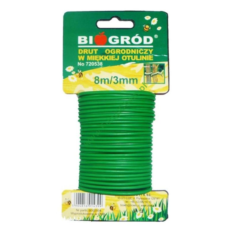 Drut ten charakteryzuje się dużą wytrzymałością, elastycznością oraz odpornością na warunki atmosferyczne. Idealny do roślin wysokopiennych. Ułatwia dopięcie rośliny do tyczki. Dzięki otulinie rośliny dopinane do tyczek nie ulegają uszkodzeniu.