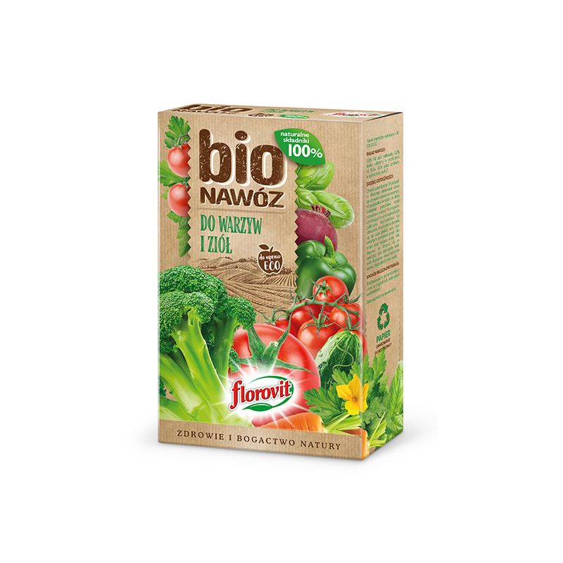 Florovit Pro Natura BIOnawóz do warzyw i ziół - to granulowany, zawierający wyłącznie naturalne składniki nawóz BIO, przeznaczony do nawożenia warzyw i ziół.