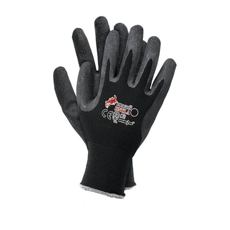 Rękawice ochronne wykonane z nylonu z dodatkowym powleczeniem z latexu.