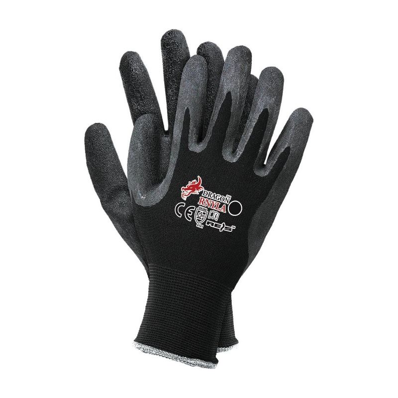 Rękawice ochronne wykonane z nylonu z dodatkowym powleczeniem z latexu.