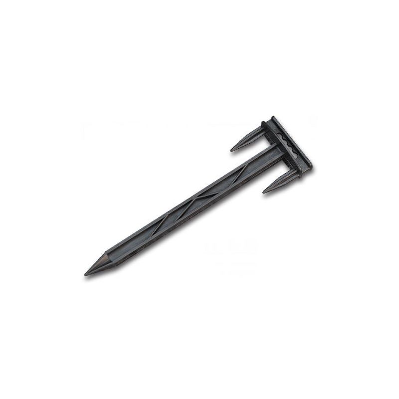 Plastikowe szpilki w kształcie trójzębu do mocowanian agrowłókniny, agrotkaniny, geosiatek, folii, plandek i innych. Wymiary: